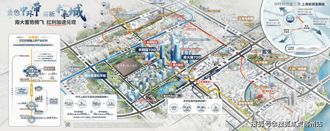 按照发布的 2035规划,南大聪慧城定位上海市科创核心从阵地的焦点承载区,取张江、漕河泾配合形成中环科创带上不成复制的黄金三角。