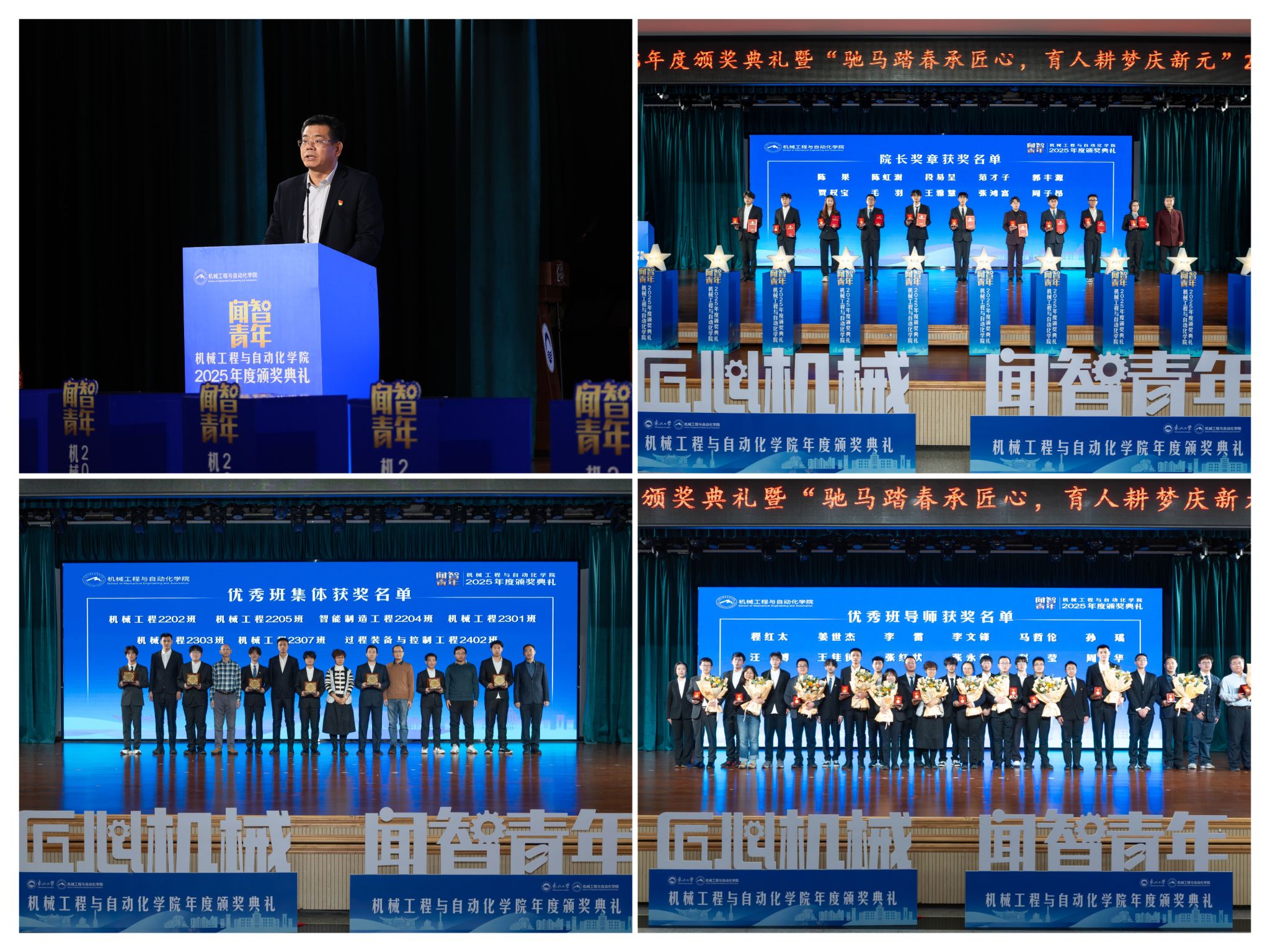 学院党委郝建山正在致辞中系统回首了一年来学院取得的主要成绩。学院积极办事国度计谋,并正在环节科研范畴实现标记性冲破,获得国度严沉专项支撑。学院成功引进增材取激光制制范畴领军团队,稳步推进学校新增学位点扶植,为久远成长奠基根本。正在人才培育方面,学院学子表示凸起,研究生学术丰盛,正在“挑和杯”“中国国际大学生立异大赛”等多项赛事中斩获国度级项,结业生就业率持续连结高位,展示了全面成长的优良素养。郝建山阐释了“闻智青年”品牌的育人内涵,勉励全体师生胸怀“国之大者”,将小我成长融入“制制强国”计谋,过硬本事,怯于立异创制,勤奋成为担任平易近族回复大任的时代新人。副院长罗忠表扬决定。颁环节分三轮顺次进行。起首颁布的是“院长章”,刘云飞为毛羽等10名正在专业进修、科技立异、社会实践等方面表示杰出的学生颁布章。随后颁布“优良班集体”项,班导师代表为7个正在班风、学风及凝结力扶植中成效显著的班级颁。最初,仪式聚焦育人一线论理学生代表向获评“优良班导师”的教员们献上鲜花取荣誉证书,表达诚挚感谢感动。“院长章”获得者代表毛羽连系科研竞赛取意愿办事履历,讲述了“道阻且长,行则将至”的成长;“优良班集体”获代表豆煜轩分享了班级凝心聚力、共建优秀学风的活泼经验。正在“闻智匠心 共话青蓝”出格环节,从分歧视角展示了师生间思惟引领、讲授相长的温情互动,彰显了育人一线的深挚交谊取结实成效。据悉,“闻智青年”是机械工程取从动化学院出力打制的文化育人品牌。本次颁仪式既是年度的集中展现,也是典型树立、激励朝上进步的主要平台,旨正在指导全体学生以先辈为楷模,坚想、夯实专业根本、锻制立异能力,勤奋成长为具有家国情怀、全球视野取创制活力的杰出工程人才,为学校“双一流”扶植和高质量成长注入芳华力量。